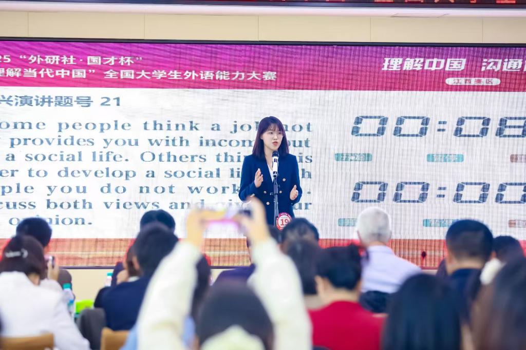 本网讯 由江西省高等教育学会、外语教学与研究出版社共同主办的2025“外研社·国才杯”“理解当代中国”全国大学生外语能力大赛(江西赛区)于11月2日在江西中医药大学落下帷幕。本次大赛汇聚了全省各高校的优秀学子同台竞技,我校参赛选手在演讲和口译两个赛道均取得优异成绩。