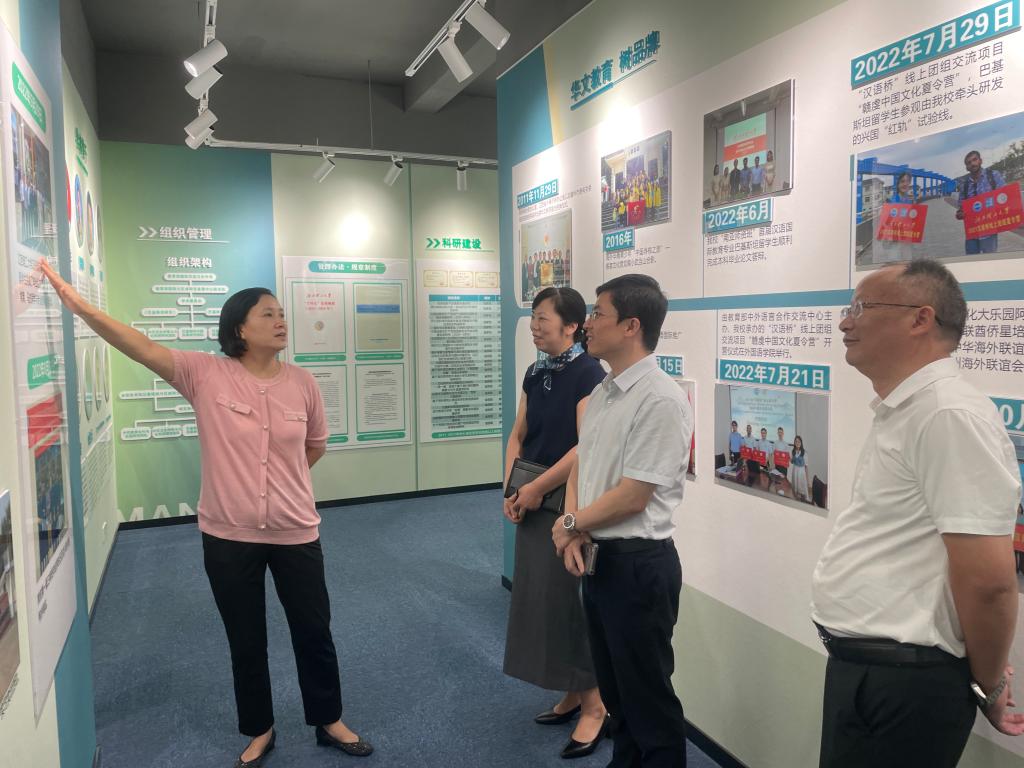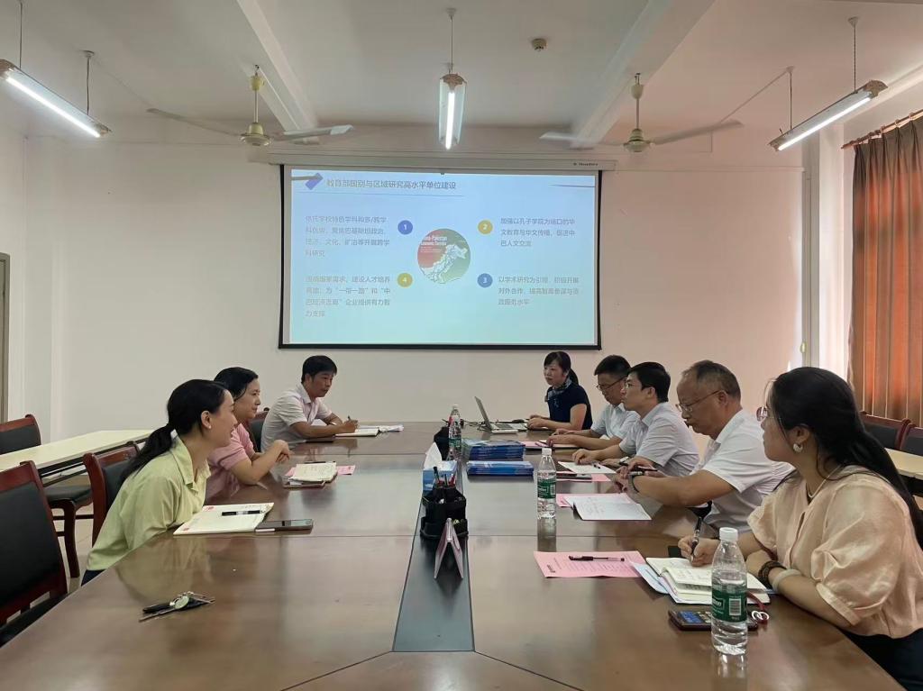 本网讯 10月15日下午,我校副校长汪航莅临我院巴基斯坦研究中心,指导迎接教育部评估工作。汪航副校长一行首先参观了巴基斯坦研究中心展示馆,随后在学院召开推进巴研中心迎接教育部评估工作专题会议。校社会科学处处长王小元、项目与成果管理科科长袁志明、综合科科长李欣,以及我院党委书记肖桂芳、党委副书记贺示婷、副院长李火秀、党政办主任邓荣宗共同出席此次会议,会议由肖桂芳主持。