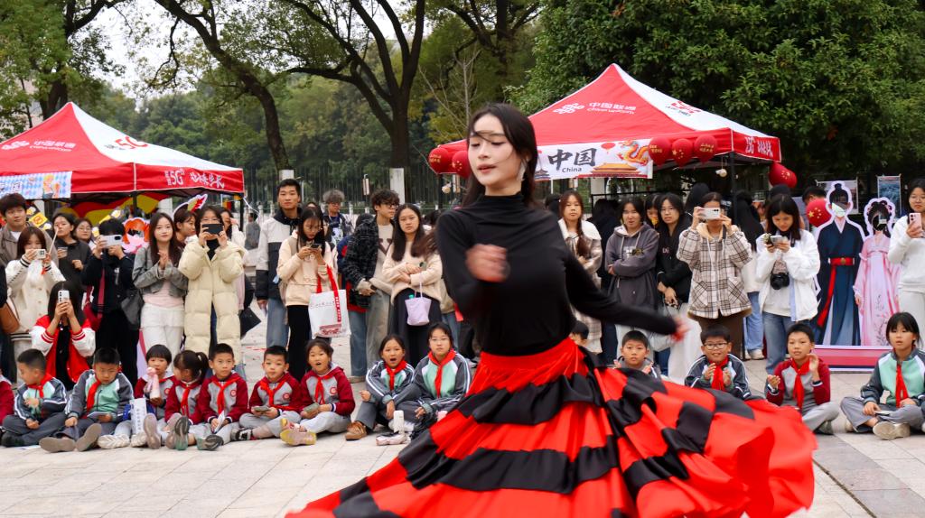本网讯 为拓展学生国际视野,营造浓厚校园文化氛围,11月11日下午,我院在红旗校区文化广场隆重举办以“漫游小‘语’宙”为主题的多语文化节。此次文化节由我院主办,由江西理工大学德语中心、俄语中心、小语种教研室及我院团委承办。活动精心设置了中国、德国、法国、英国、俄罗斯、西班牙、韩国、日本、巴基斯坦共九个国家的文化展台,融入丰富多彩的艺术展演,为全校师生带来一场沉浸式的全球文化体验盛会。