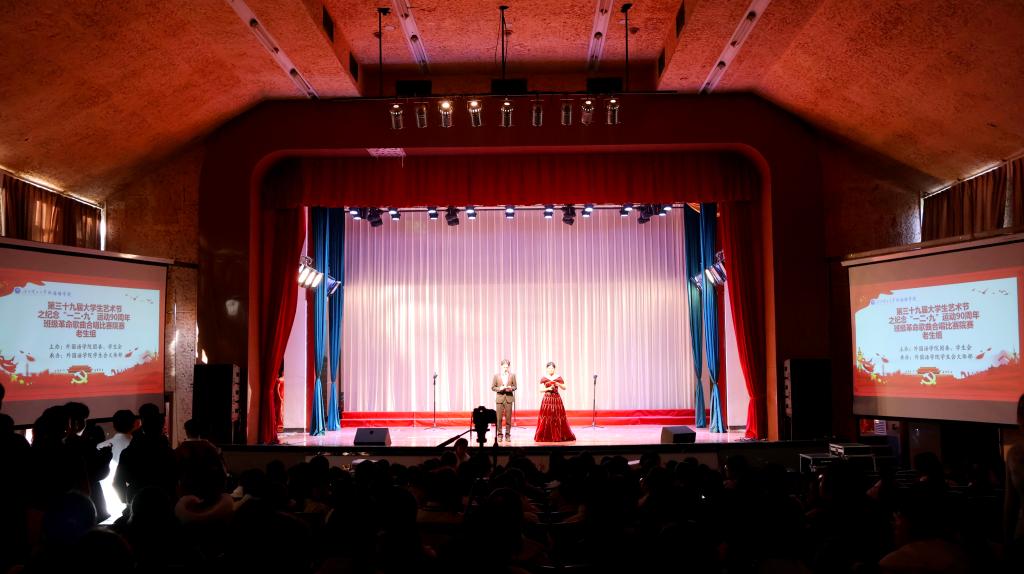 本网讯 为深入学习贯彻党的二十大精神,缅怀革命先辈,传承“一二·九”爱国运动精神,11月23日下午,由我院团委、学生会主办,学生会文体部承办的第三十九届大学生艺术节之纪念“一二·九”运动90周年班级革命歌曲合唱比赛院赛,于红旗校区大礼堂隆重举行并圆满落幕。