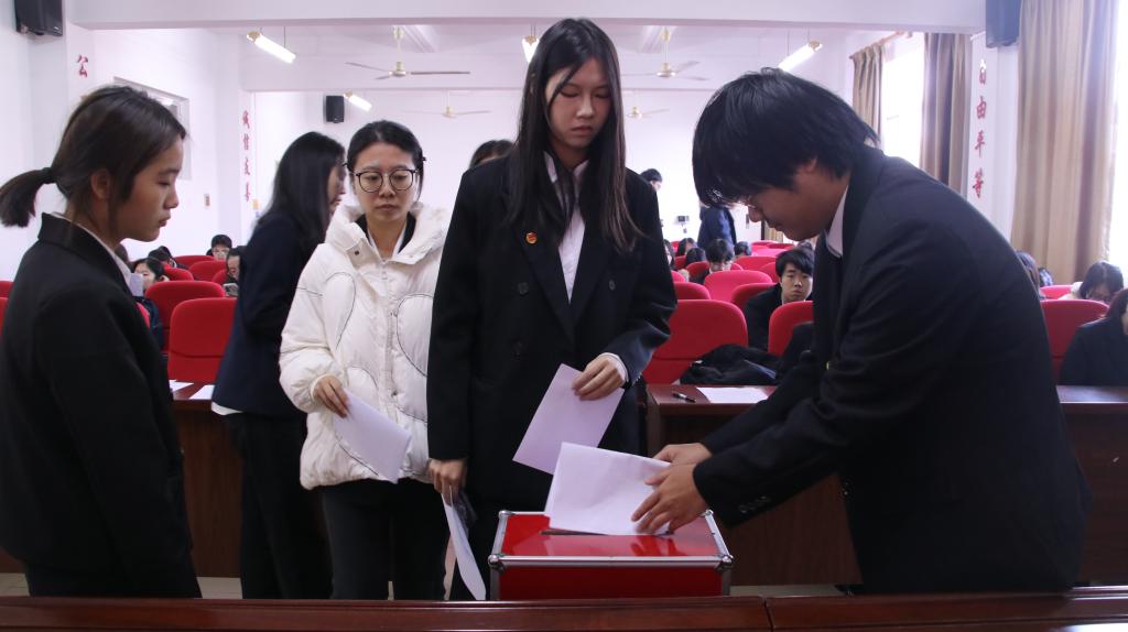 大会第二阶段,韩民代表学院第七届团委作工作报告。他全面回顾过去三年工作,系统总结了以“四位一体”工作体系推动团学工作取得的显著成效,重点介绍了“1+2+3+X”第二课堂育人品牌矩阵的建设成果与多项品牌活动的拓展情况,深刻分析了学院团委当前工作面临的新形势和新任务,总结不足,展望未来。会议审议通过选举办法及监票人、计票人名单,并介绍了委员候选人。随后在监票人的全程监督下,与会代表以认真负责的态度填写了选票并有序投票。