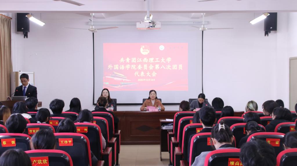本网讯 12月14日上午,学院在学院楼C402召开共青团江西理工大学外国语学院第八次代表大会。学校团委副书记黄芳、学院党委副书记贺示婷、安全工程学院学工办主任兼团委书记熊昌芹、学院学工办主任兼团委书记韩民出席会议,全体团员代表齐聚一堂,共同见证了团学工作薪火相传的重要时刻,会议由韩民主持。