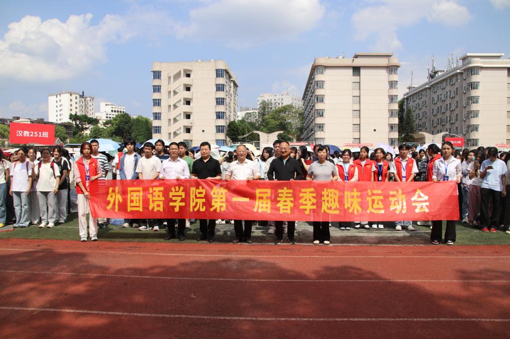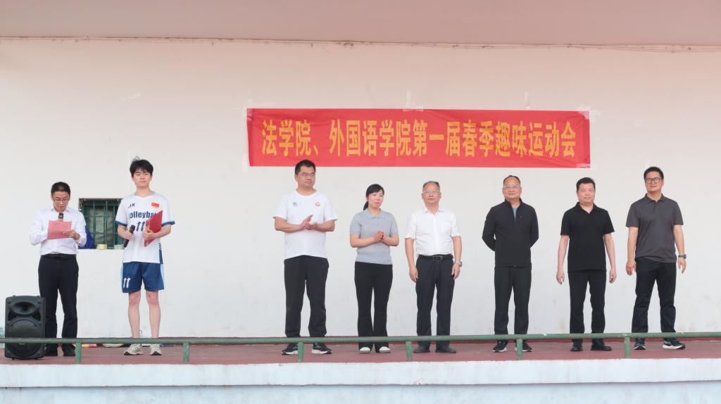 本网讯 为丰富校园文化生活,增强学生体质,促进学生之间的交流,4月18日下午,我院与法学院共同举办的第一届春季趣味运动会在红旗校区田径场顺利举行,社会科学学部办公室主任兼分管日常工作的副部长王小元、我院党委书记郭雁、法学院党委副书记欧阳鹏、巴基斯坦研究中心主任程渊、我院副院长李火秀、法学院副院长孟春阳以及两院辅导员、班主任和全体本科生、研究生共同参与。开幕式由我院学工办主任兼团委书记韩民主持。