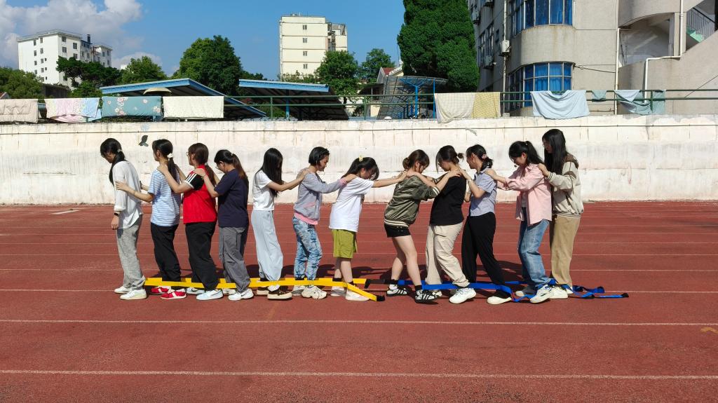 开幕式结束后,比赛正式拉开帷幕。五个项目衔接紧凑,现场节奏紧张而有序。在“同炉共进”环节,各队队员绑腿并肩,齐喊口号,步调高度一致;“钨金战鼓”区域,鼓声随着球的起落沉稳有力,引来观众阵阵计数声。“金石投趣”的排球入篓声、“矿脉齐跃”的长绳拍地声,与“稀土争锋”加油呐喊声交织回荡,现场气氛持续升温。经过一番激烈比拼,各项目顺利评选出各类奖项。活动结束后,各班级自发组织合影留念。